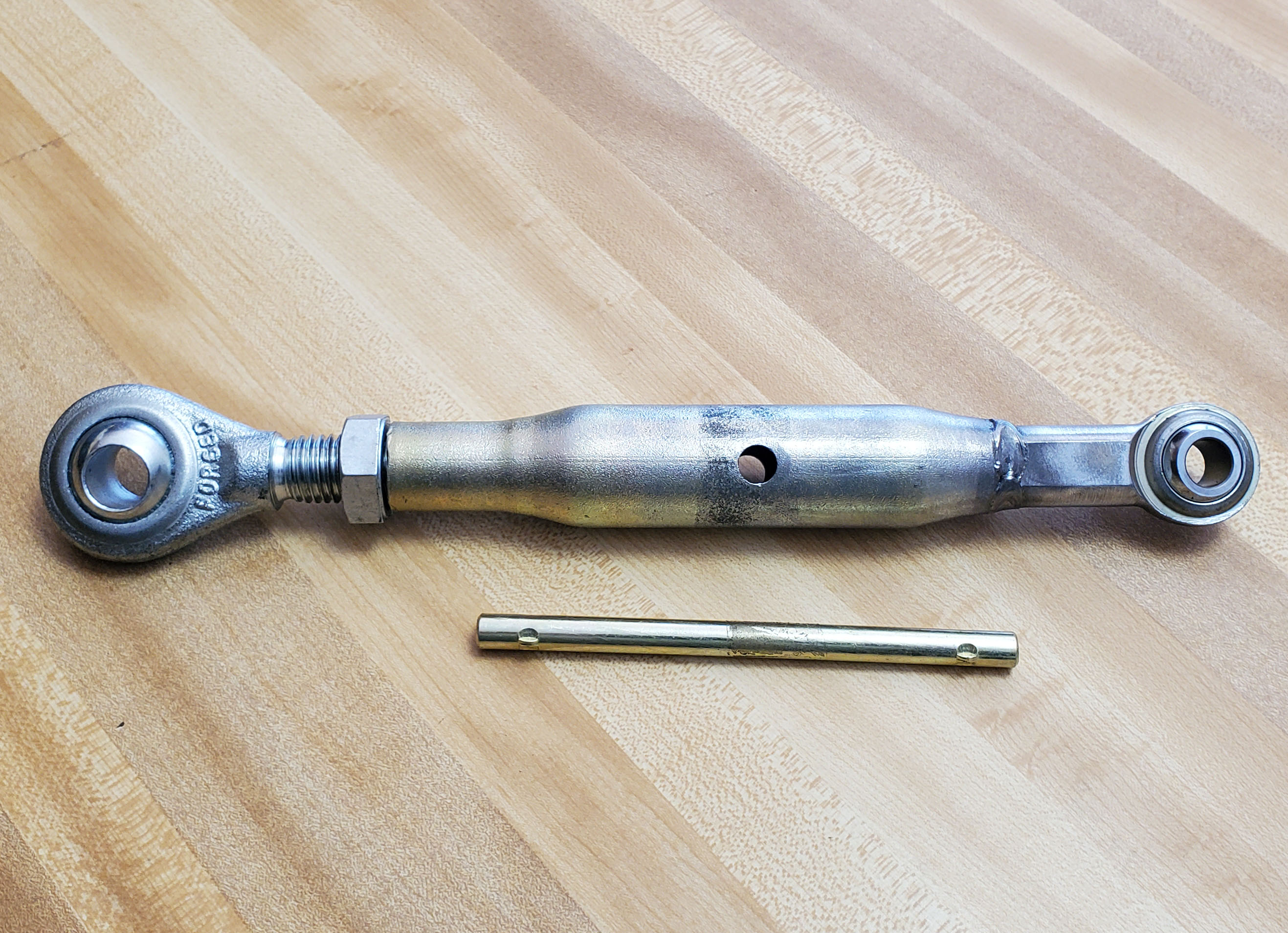 Connects the 3rd link to your implement. Completely adjustable from 10" to 15". 5/8" holes. Comes with hole in the middle and rod to make it a T-Handle. Similar to Cub Cadet # 749-0238
