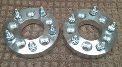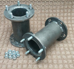 These are billet aluminum spacers for moving your tires out 1". They are a 5 bolt on a 4.5" bolt circle to a 5 bolt on a 4.5" bolt circle. The outer studs are 13 mm and you will have to drill your rims out a hair with a 1/2" drill to git the existing rims on if they are the small 7/16" holes. Some rims for some garden tractors are 13 mm already. Come with a pair of cover plates to cover the hole in the middle of your rim. Sold in Pairs, Unpainted.