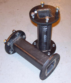 These are premium new dual wheel adaptors for you garden tractor. They will fit Cub Cadet, John Deere, Simplicity, AC, Sears and most garden tractors that use the 12" rim with the 5 bolts on a 4 1/2" diameter bolt circle. These rims were widely used between most lawn and garden tractor manufactures. These have been used on 6 and 8 wheel swamp buggies and trenchers. Not recommended for speeds over 10 MPH, Competition Pulling Use or High Speed Applications. Our spacers are made with 5/16" thick, grade 50 steel, outer plates. The inner plate is chamfered to accept wheel studs or nuts. The square tube is a 2 1/2 x 2 1/2 x 3/16 wall tube. We fully weld the plates to the tubes on the inside and outside, providing maximum strength, not like some out there that just weld a plate to a tube. Then we use fine thread, grade 5, zinc coated bolts thru the outer plates and weld the backsides. The reason for this is that the bolt can be cut out and a new one welded in. Tapped plates are not as easily repairable! We provide fine thread, chrome plated acorn nuts to finish out the package. Cover plate are included to slide over the studs to cover up the end of the tube. Ships unpainted unless you purchase powder coating, below.