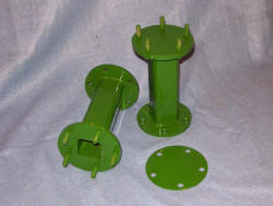 We have had requests for a larger center dual wheel spacer that will clear over some brands. The larger center is 3" clear inside diameter. These are premium new dual wheel adaptors for you garden tractor. They will fit Cub Cadet, John Deere, Simplicity, AC, Sears and most garden tractors that use the 12" rim with the 5 bolts on a 4 1/2" diameter bolt circle. These rims were widely used between most lawn and garden tractor manufactures. Have been used on 6 and 8 wheel swamp buggies and trenchers. Not recommended for speeds over 10 MPH, Competition Pulling Use or High Speed Applications. Our spacers are made with 5/16" thick, grade 50 steel, outer plates. The inner plate is chamfered to accept wheel studs or nuts. The square tube is a 3" x 3/16" wall tube. We fully weld the plates to the tubes on the inside and outside, providing maximum strength, not like some out there that just weld a plate to a tube. Then we use fine thread, grade 5, zinc coated bolts thru the outer plates and weld the backsides. The reason for this is that the bolt can be cut out and a new one welded in. Tapped plates are not as easily repairable! We provide fine thread, chrome plated acorn nuts to finish out the package. Cover plate are included to slide over the studs to cover up the end of the tube. Ships unpainted unless you purchase powder coating, below.